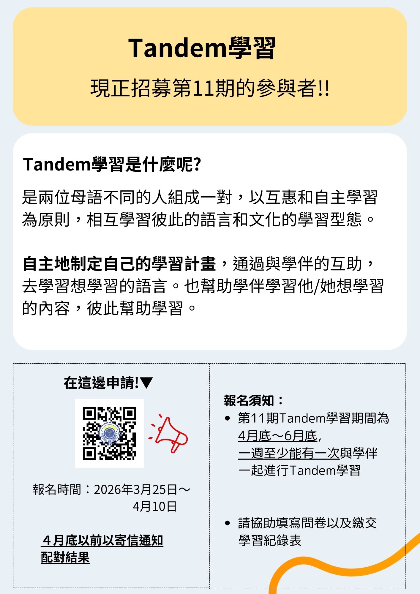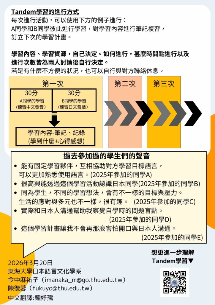 東海大學第11期(2026年4月底~6月底)Tandem(タンデム)参加者を募集中!