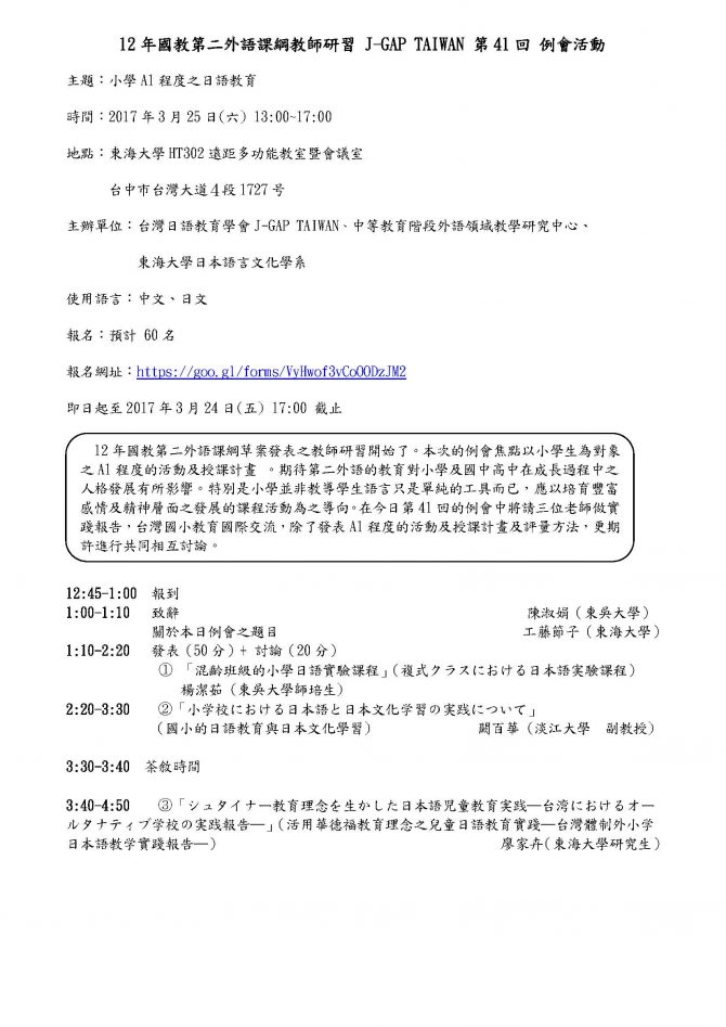 12 年國教第二外語課綱教師研習 J-GAP TAIWAN 第 41 回 例會活動