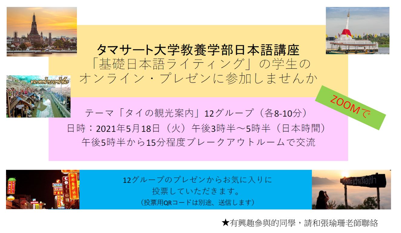 泰國Thammasat University(法政大學)日文系同學要舉辦線上發表會