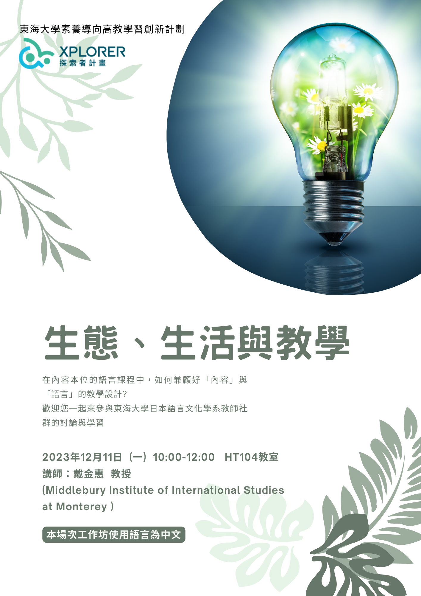 2023年12月11日(一)10:00-12:00生態、生活與教學演講