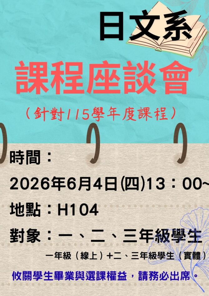 2026年6月4日(四)13:00~課程座談會 (針對115學年度課程)