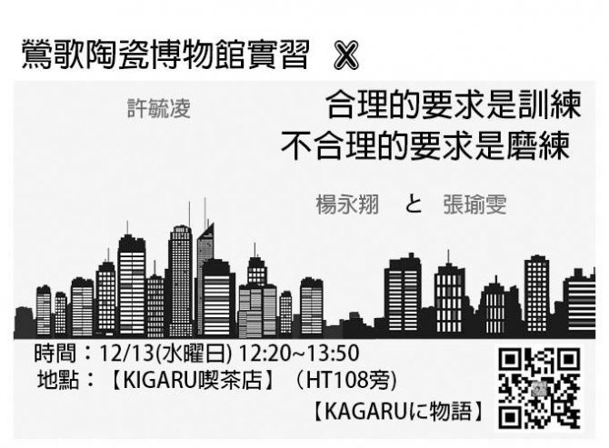 【Kigaru に物語】本學期最後一場分享,壓軸來啦!! 本學期的最後一場重頭戲 我們邀請沈宏達學長為我們分享那些「學校沒教的事」~ 學長在大學期間不僅為日文系壘球隊的重要成員, 也曾在在學期間得到辯論比賽冠軍! 踏出職…